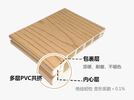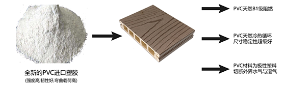 PVC是為數不多的極性塑料,經獨特配方改性后能與木粉完美融合,把木粉緊緊包裹著,切斷外面的水氣、濕氣。