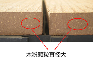 木粉:一代塑木采用的木粉顆粒直徑較大,有些廠家更是直接采用木屑,粗糙的木粉直接暴露在戶外條件下。