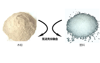 融合性:PE、PP、PS塑料這些塑料表面均為非極性,而木粉卻是強極性的,因此一代塑木在混合制備的過程中,存在著較高的界面能差,塑料與木粉很難達到充分融合,無法使塑料擁有的木粉的剛性與強度,使一代塑木的機械性能很差。