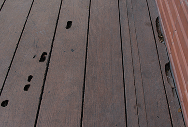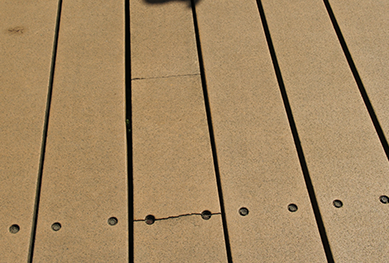 4)普通的二代共擠塑木的包覆層與芯層為不同材質的材料,當工藝不成熟時包覆層與芯層結合力不足,很容易產生兩層脫落現象,俗稱“脫膠”。而目前國內只有少數擁有共擠技術的廠家,可以成熟控制共擠工藝的廠家更是寥寥無幾。