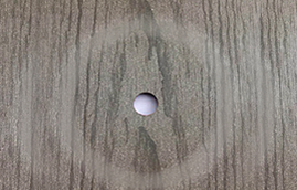耐磨測試 100 轉操作后, 傳統塑木有260mg 表面材料被磨掉。