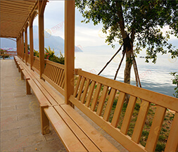 塑木廊架的名稱和分類非常的多,有很多種不同的叫法。一般的應用在戶外等各種景觀工程項目中。廊架可運用于各種類型的園林景觀綠地中,常設置在風景優美的地方供休憩或景致點綴,也可以和亭、臺、廊、水榭等融合,構成外觀造型美觀的園林建筑群;在居住區綠地、游樂場、別墅庭院花園中廊架供小憩、修剪、納涼;用廊架替換廊子,可以L系空間;用格子垣攀援藤本植物,可隔開景物;園林中的茶室、餐廳等,也可以用廊架作為涼棚,設置座席;也能用廊架作園林景觀的大門。?