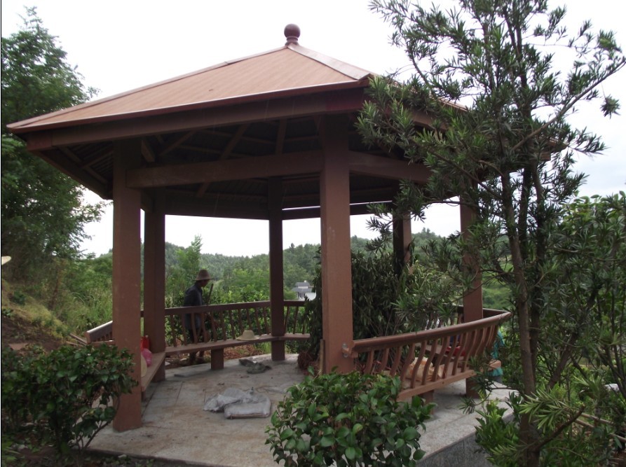 戶外塑木涼亭如果能達到在戶外使用 耐腐蝕,不變形,不變色,牢固等幾個優點,那說明這種塑木涼亭的質量非常的好,塑木復合材料這種材質也非常的好。 塑木涼亭還具有以下很多優點: