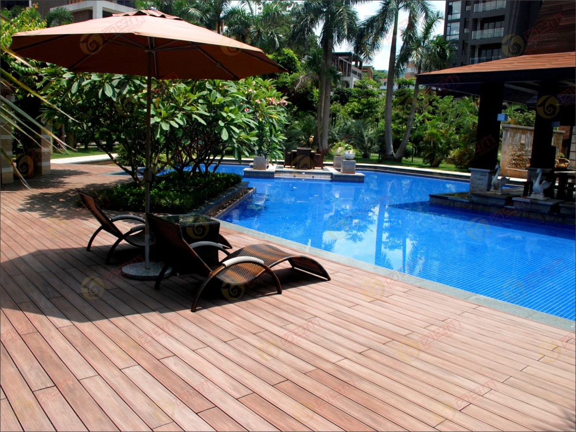 塑木地板材料分為PE塑木和PVC塑木等,這是傳統的塑木材料,更高檔一點的是PVC共擠塑木地板材料,表層有360°包裹著的保護層 所以更防水,更防腐。隨著現代技術的不斷完善改進,新一代塑木材料共擠塑木在市場需求中誕生。共擠塑木表面均勻且牢固地包覆有共擠層。除了擁有防霉、防蛀等傳統塑木的物理性能外,它還具有更強的耐磨性、抗劃傷、防污和耐候性能。外觀更加符合人們的審美并且更加耐用。