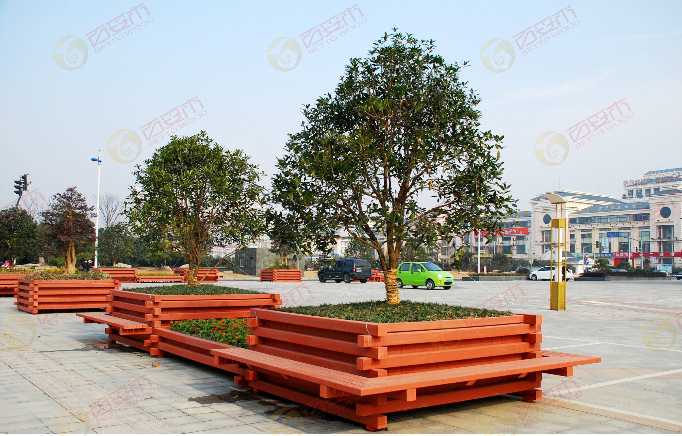 塑木圍樹椅是一種新型現代環保產品,為適合現代人回歸自然舒適的生活方式而生產。具有節能環保、強度高、不易變色,易清潔、防蟲蛀、耐腐蝕、美觀大方等優點。WPC塑木復合材料是用高分子材料+木粉等其它成分經擠出或壓制成型的型材、板材或其他制品,替代木材和塑料。大力開發塑木材料的推動力來自于合理利用地球有限資源的要求,減少原木的使用量,保護我們有限的森林資源,保護人類賴以生存的環境,創造出的回收再利用材料。
