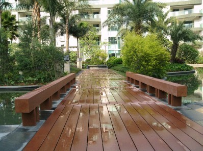 東莞市碧桂園小區(qū)綠化工程已經(jīng)竣工,在此次項(xiàng)目中,百妥木公司為其提供了小區(qū)木地板材料,在小區(qū)水池上鋪設(shè)了一條供人過橋的塑木棧道,非常實(shí)用的同時也增加了小區(qū)本身的美觀性。
